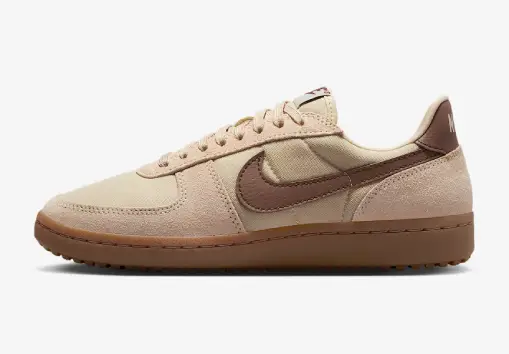 The Nike Field General ’82 Beach Cacao Wow is a retro-inspired sneaker that draws its design from the turf shoes worn by American football players in the 1980s. It features a classic construction with a mix of durable suede and sturdy textile materials on the upper, combined with leather panel accents for enhanced style and support. The shoe offers a padded ankle collar and foam midsole for comfortable wear throughout the day.