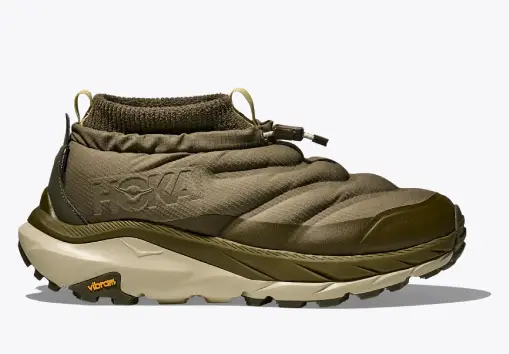 The Hoka Kaha 2 Frost Moc Gore‑Tex is aimed at those who want serious winter performance disguised as a sneaker‑boot. Its key feature is the Gore‑Tex membrane, which offers reliable waterproofing while allowing breathability—essential if you spend hours outdoors or transition between cold streets and heated interiors. The thick, cushioned midsole typical of Hoka provides excellent underfoot comfort and shock absorption, ideal for long walks on hard, cold pavements. The Antique Olive / Spruce Green colorway adds a rugged, outdoor aesthetic that fits perfectly with winter gear.